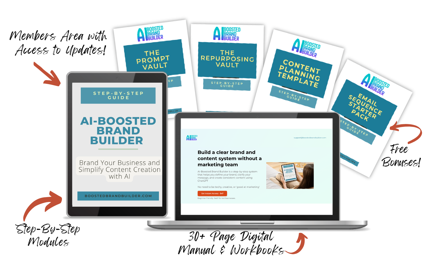 You'll get ready-to-use templates, prompt vaults, and planning tools that make the whole process faster, clearer, way less annoying, and best of all...repeatable as your business grows.