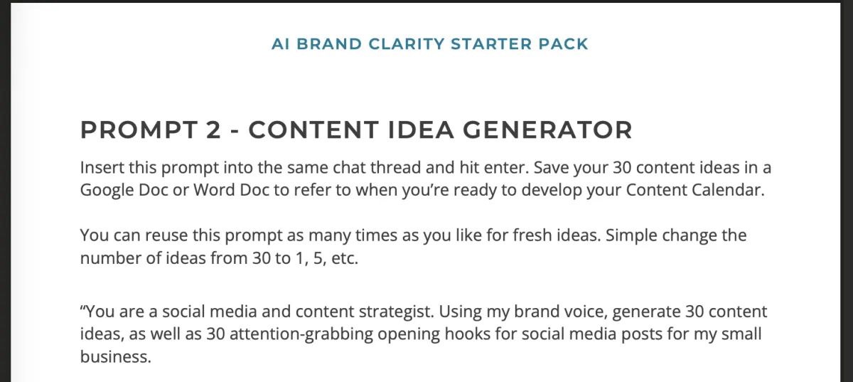 Turn your brand clarity into 30 content ideas you can post across social media.